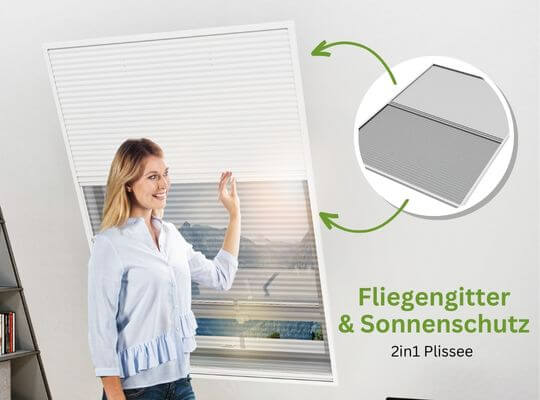 Ein Fliegengitter Plissee ist ähnlich einem Rollo, jedoch wird das Gewebe nicht aufgerollt, sondern gefaltet, wodurch es nicht nur einen edlen Look erhält, sondern auch sehr kompakt wird und somit ideal für Fenster mit Rollokästen und geringer Einbautiefe. Ein stabiler Aluminiumrahmen sorgt für Stabilität, während eine durchgängige Griffschiene einfaches öffnen und schließen ermöglicht. Die umlaufende Dichtungsbürste hält kriechende Insekten ab. Einbautiefe nur 5mm - ideal bei wenig Platz.