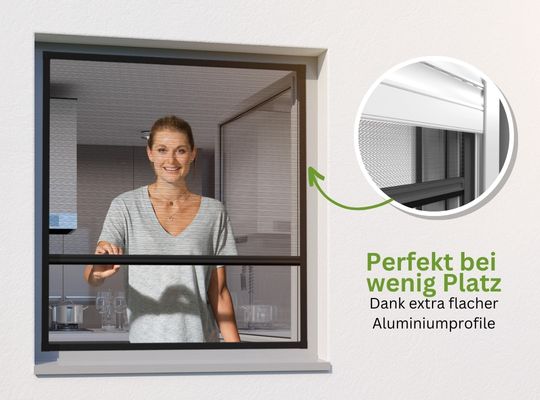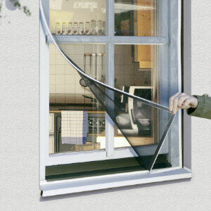 Das Fliegengitter wird in einen Aluminiumrahmen gespannt und mittels Keder fixiert. Der Spannrahmen wird mit 4 Einhängewinkel in den Blendrahmen des Fenster eingehängt. Das Gewebe schütz vor fliegenden Insekten, die umlaufende Dichtungsbürste welche zwischen Fensterrahmen und dem Spannrahmen liegt, hindert krabbelnde Insekten vom Eindringen ab. Somit sind Sie rundum vor Insekten geschützt.