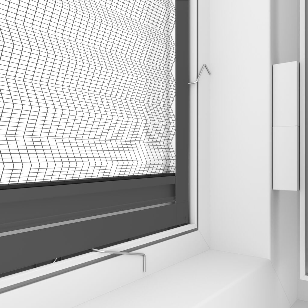 Dieses Set verwandelt Ihr Fenster in eine elegante, extra schlanke Fliegengitterlösung. Es überzeugt durch ein hochwertiges, schwarzes Plissee-Gewebe, das für klare Durchsicht sorgt, und eine praktische Griffschiene, die das flexible Öffnen und Schließen ermöglicht. Dank der innovativen Drahtfedern kann der Rahmen bohrfrei befestigt werden – ideal auch bei flächenversetzten Fenstern oder in Kombination mit einem Rollladen.